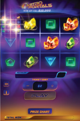 Cruise the cosmos with Astro Portals, our intergalactic instant game! Try to make a cosmic cluster of three or more of the same symbol to win a prize. Reveal a Mini Grid symbol to open a mini grid for another chance to win. Find three of the same Mini Grid symbol to launch free plays on a Mega Grid! If you make a cluster while a multiplier is shown, you can boost your multiplier total and increase your prize. Find two or more Bonus Symbols to blast your way to an instant prize.